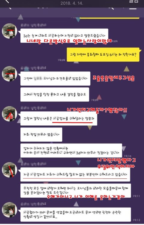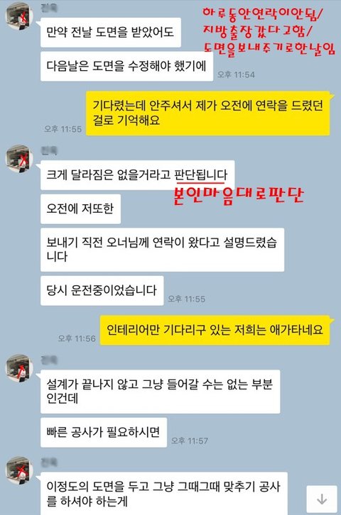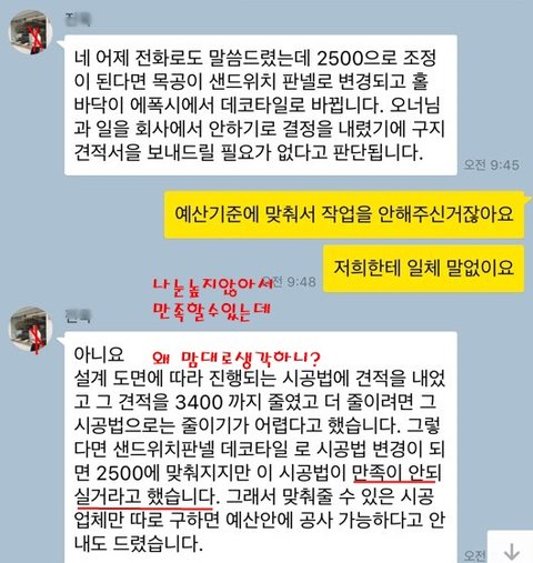 4월 10일에 공사를 들어가야한다는 말도 사전미팅,현장미팅에서 분명 말도하고 카톡으로도 두차례에 걸쳐 물어보니 가능하다고 하더라구요..
