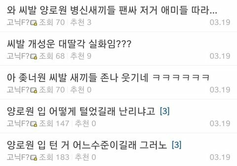 나 워너원 타멤 갠팬인데 남연갤이 뭐하는 데길래 이딴 식으로 글 씀? 고소 안 당해? 그리고 남연갤이랑 라창이랑 같은 곳이면 왜 라창이라고 불려?