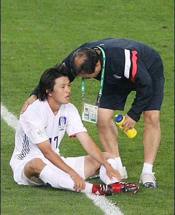 부상으로 인헤 투혼을 발휘하던 최진철...