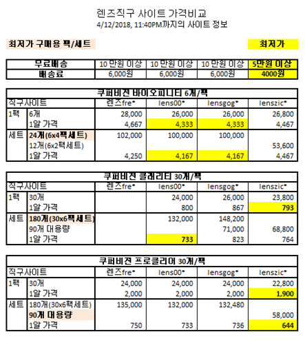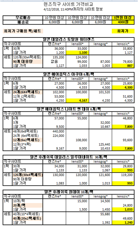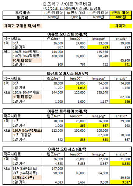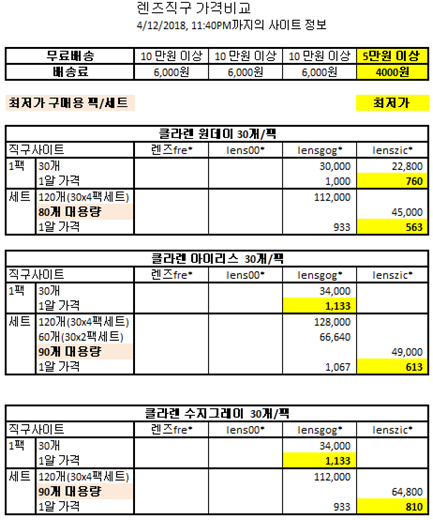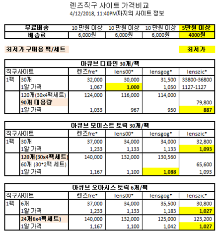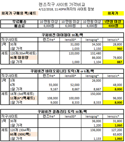 렌즈 직구 사이트 렌즈별 가격비교 - 한국어 직배송 사이트