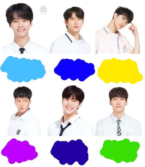 엔 하늘색 레오 파란색 켄 노란색 라비 보라색 홍빈 네이비 혁 초록 노랑가지고 고민 많이 햇당 특히 레오ㅜㅜ!