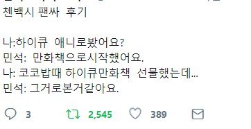 팬분이 주신 만화책으로 하이큐를 보게 된 시우민 ㅇㅇ
