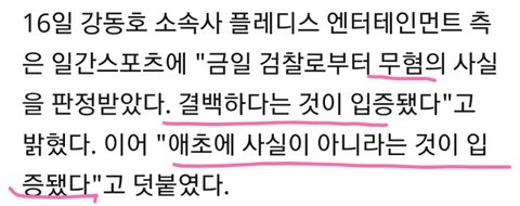 증거불충분 무혐의도 있긴한데 강동호 같은 경우 사실이 아님을 입증한 무혐의라고 기사떴음