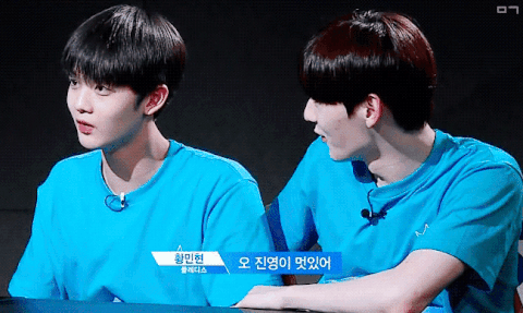 민현이가 프듀때 센터정하는거에서 진영이 멋있다고 해주고