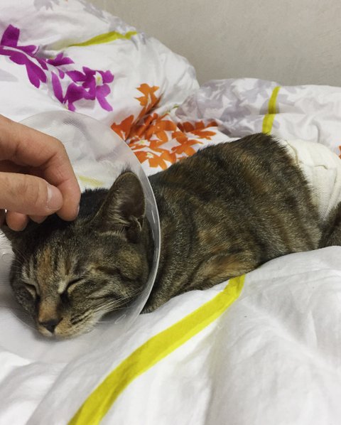 그래서 다음 날 병원으로가 중성화 수술을 시키고 집으로 돌아온 별이 모습..