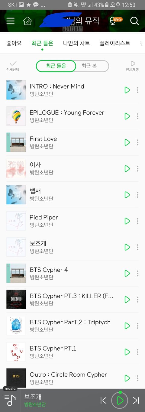 아 그리고 나 얼마전에 노래 추천해달라고 방탄 글 댓단사람 맞아 ㅋㅋ!! 추천곡들 다 잘듣고 있어