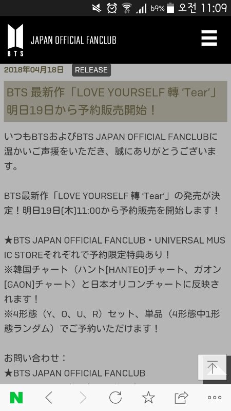 이번 'tear' 앨범 일본에서도 19일부터 예약판매 시작하고