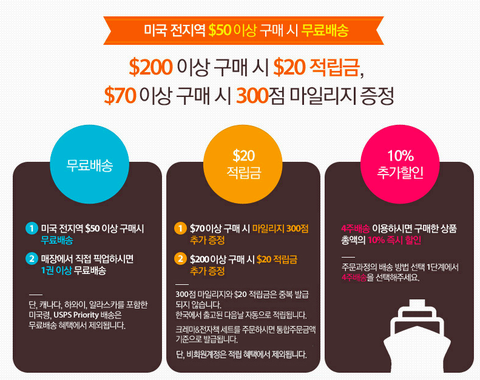 그리고, 여기서 하나더, 미주내 50불이상 구매시 무료배송!