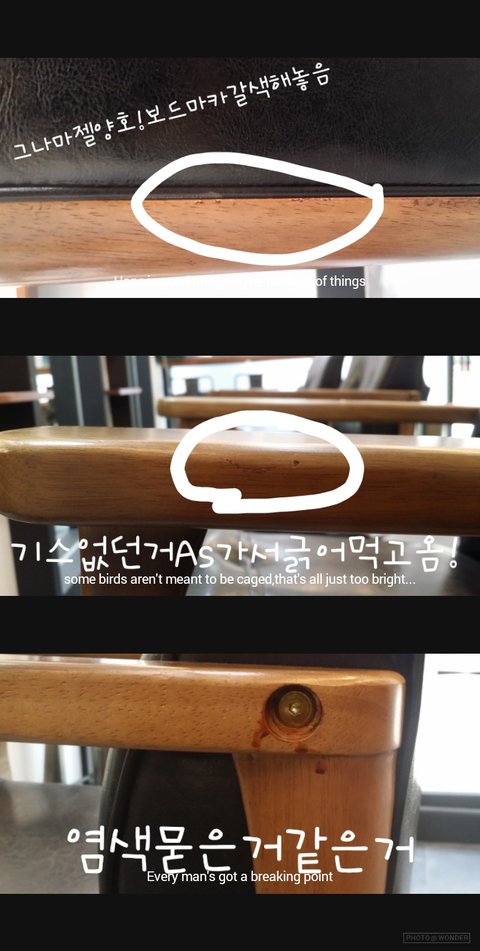 다른분들은이런걸로트집안잡는다고..저보고쉬는날매장을나와서 다른의자랑 교환하라더군요