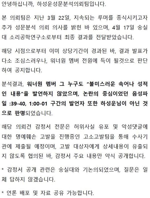 숭실대 결과나왔는데 하성운한테 불리해서 공개안한다고 한 사람들 다 어디갔냐~~~~~~ 전에 분석했던곳 아니라고 하고 바득바득 우기던 애들 고소길만걷자