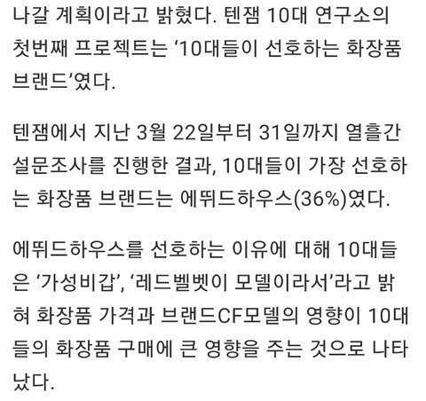 10대들이 선호하는 화장품 브랜드 1위 에뛰드