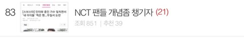톡선에 세개나 떴어...ㅠㅜ 어느 정도 각오하고 있었지만 그래도 아프고 힘들다...엔시티는 정말 열심히 준비해서 첫방 시작한 건데 처음부터 이 모양이니 애들한테 너무 쪽팔리고 미안하다....