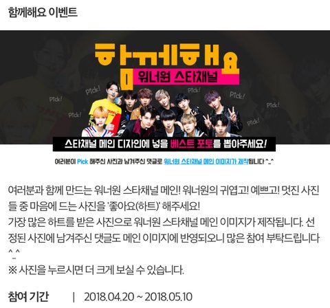 하트 가장많이 받은 사진이 스타채널 메인 이미지로 제작된데...