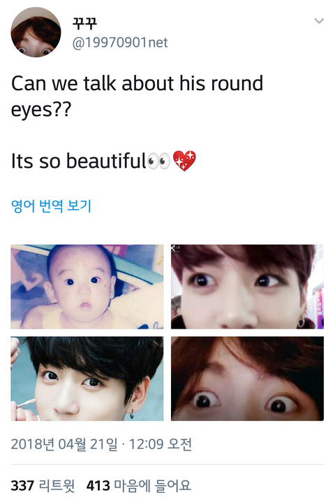 정국이 눈 새삼 진짜 동그랗다ㅋㅋ