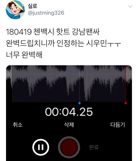 https://twitter.com/justming326/status/987366079579107329?s=21(시우민 팬싸음성)