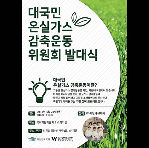 작년 겨울에 W-재단에서 대국민 온실가스 감축운동 홍보대사 위촉식 한 적 있었잖아, 그거 위원회 발대식을 하는데 인피니트도 참석한대!!