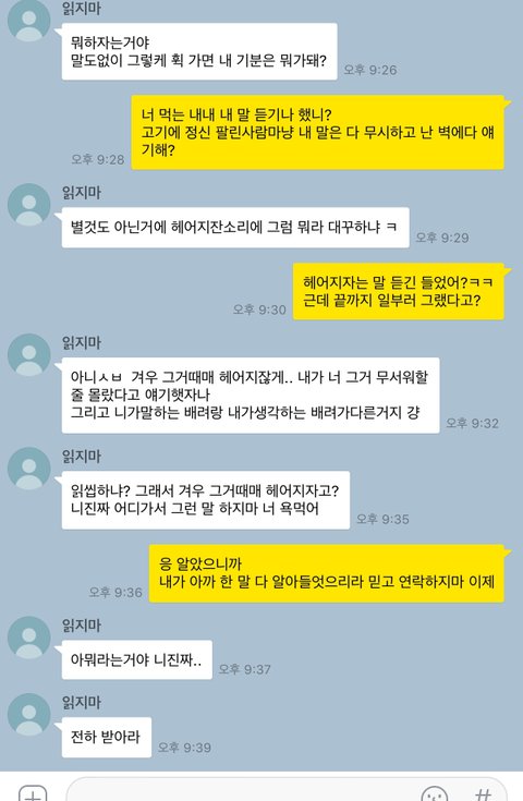 이새끼 내가 앞에서 이별통보하는데도 얌체처럼 내 눈치보면서