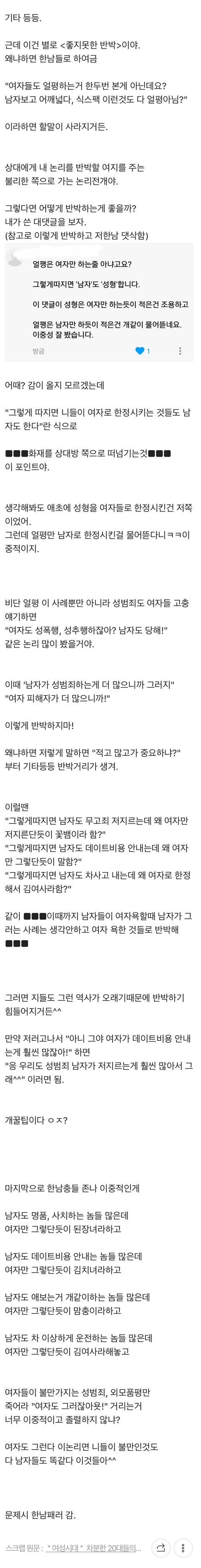 남자가 "여자도 그러잖아"할때 반박법