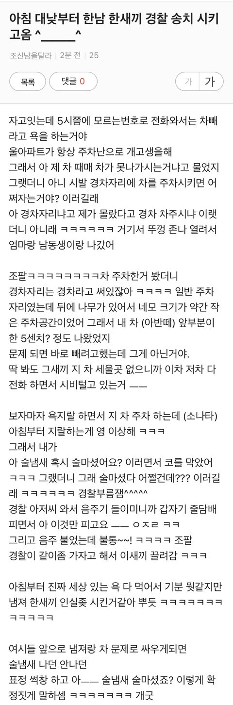 병신년이네 한남새끼가 지랄했다면서 왜 니 동생 한남새끼는 델꾸가서 지랄이니 ? 그냥 술 취한 또라이가 시비걸어다구 하든가 여기 글 보믄 한남 김치년등등 말이 나오는데 니네 얼굴에 침 뱉기하지마 몇명 남녀 인간들땜에 짜증나는거 알겟지만 듣기 싫은 한남 김치년 이라는 말좀 작작해라 그냥 병신 또라이 등등 있는데