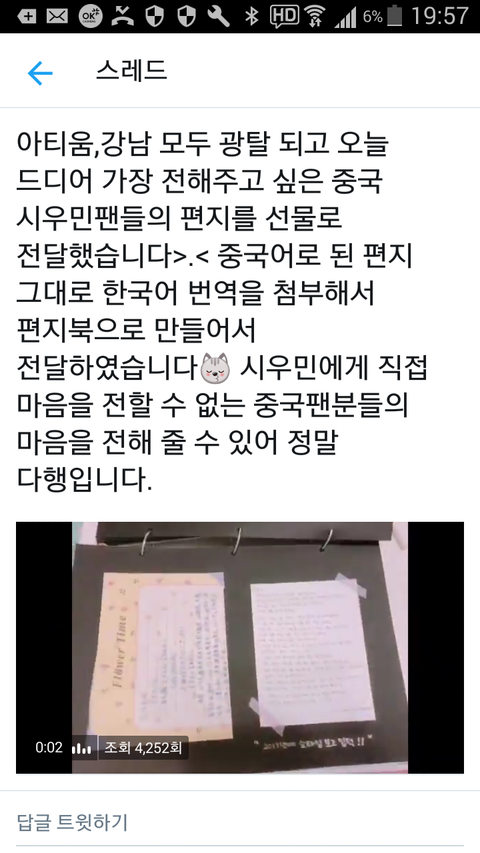 슈썸님이 오늘 시우민한테 전해준것