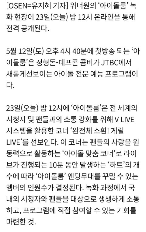 오늘밤 12시 아이/돌룸 녹화현장 공개래!