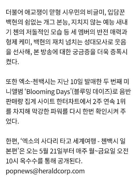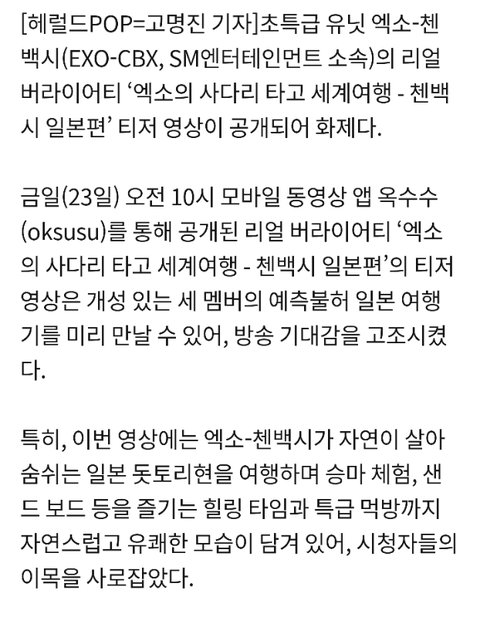 '첸백시' 비글 시우민+입담꾼 백현+예능 새내기 첸의 일본 여행기 (출처 : 헤럴드POP | 네이버 TV연예) t.co/ryTjXOVZWx