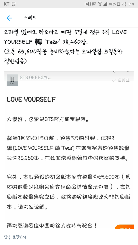 잘 몰라서 그러는데 그럼 빅.히트에서 아마.존처럼 타오.바오에 다이렉트로 들어간거란 소리야? 미안 쌩초보라