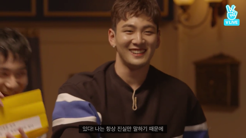 브이앱에서 거짓말 탐지기로 게임을 하게 됐어.