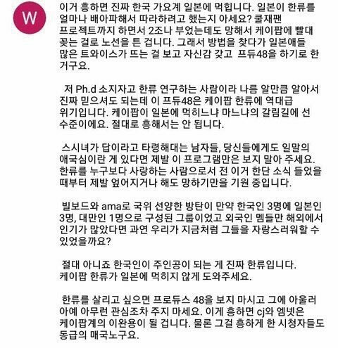 일본 요즘 아시아를 시작으로 세계진출 노린댔음 프듀48 나오는 일본그룹 akb48 한국에서 유명세타면 그걸 시작으로 다른 일본 그룹들 줄줄이 한국진출 하겠지? akb48때문에 일본아이돌에 익숙해진 한국인들은 어 모야모야 저 뉴페이스들은? 카와이! 하면서 팬덤계승 되겠지? 저번 마마때도 일본그룹 나왔던 것처럼 점점 자연스럽게 한국 연말 시상식에 일본 아이돌들 출연하겠지? 그럼 국내에서 케이팝 입지 작아지겠지? 그러다보면 어느샌가 해외케이팝 팬들 관심도 한국에서 인기있는 일본아이돌들한테 쏠리겠지? 그럼 결국 지금 케이팝 인기를 일본아이돌들한테 고스란히 물려주는 셈이지??? 이거 존 나 끔찍하지 않냐????