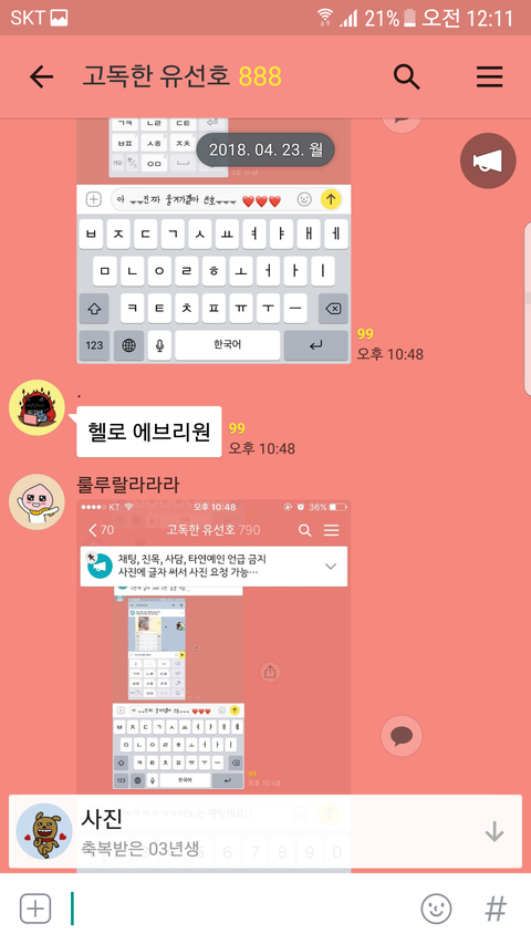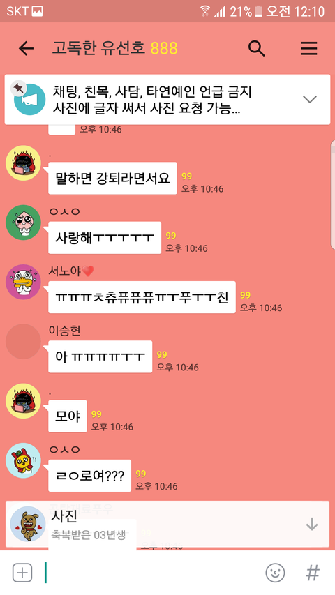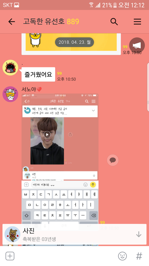 아까 고독방에 유선호 들어왔었음.ㅠㅠㅠㅠㅠㅠㅠㅠㅠㅠㅠㅠㅠㅠㅠ 이거 현실이냐고ㅠㅠㅠㅠㅠㅠㅠ나 지금 지구에 있는거지? 진짜 처음에 사칭인줄ㅠㅠㅠㅠㅠㅠㅠ