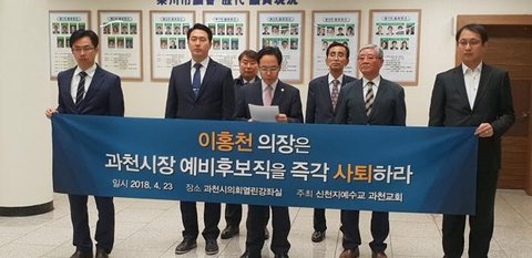 신천지 과천교회, 이홍천 과천시장 예비후보 사퇴촉구 기자회견