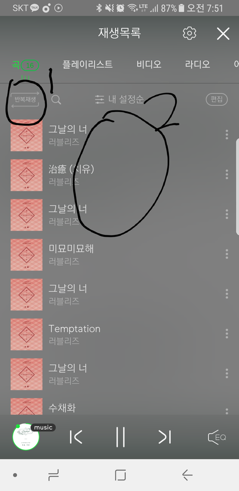 2번 리스트에서 타이틀은 한곡 걸러가며 들어라