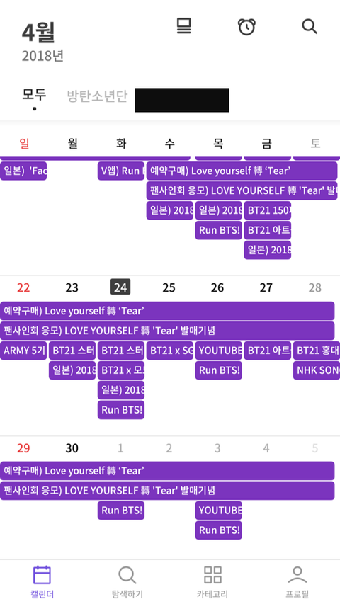 4월 26일(목) 00:00: BTS:번더스 - 6화 (이번엔 안늦겠징)4월 26일(목) 22:00: Run BTS! 2018 - 50회 Behind