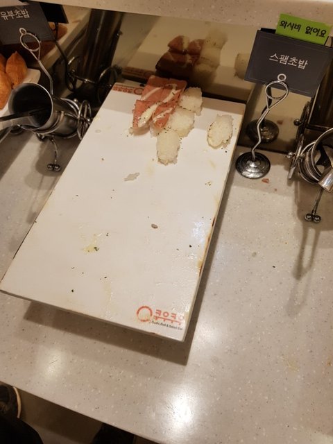 세상에... 음식을 가지러 돌던중... 초밥중에 스x초밥이 있더라구요...