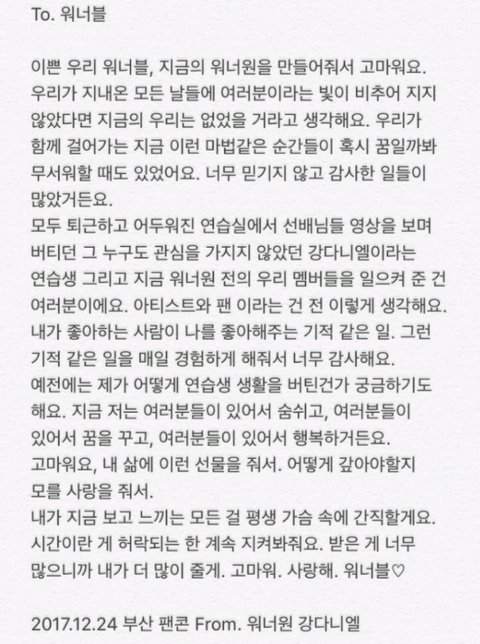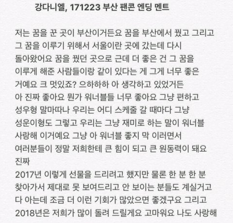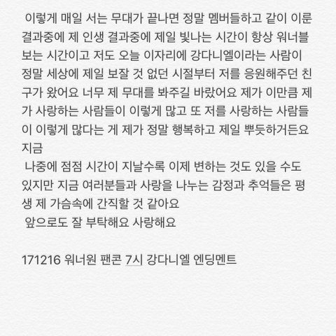 쏠쏠 직캠 1주년 기념ㅋ 녤이 했던 좋은 말 정리해봐써 사진12장까지밖에 안넣어져서 12개만.. 예쁘게 말하는 강다니엘 정말 좋다 사랑해❤ 계속 꽃길걷자❤