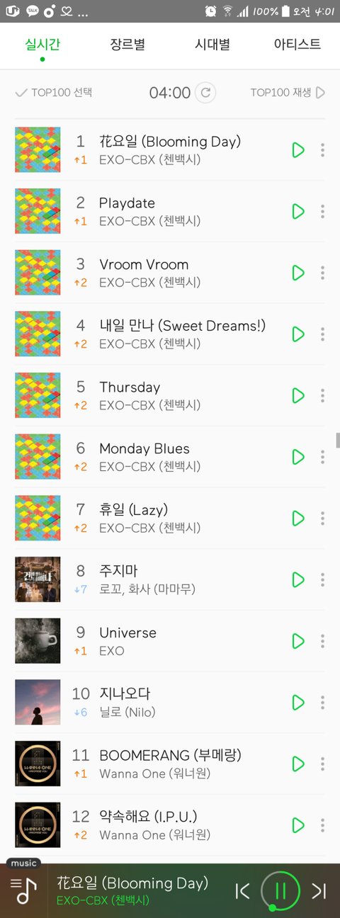 아 순위 끝내주죠~ 썩수 10위권 안에 엑소곡이 8곡