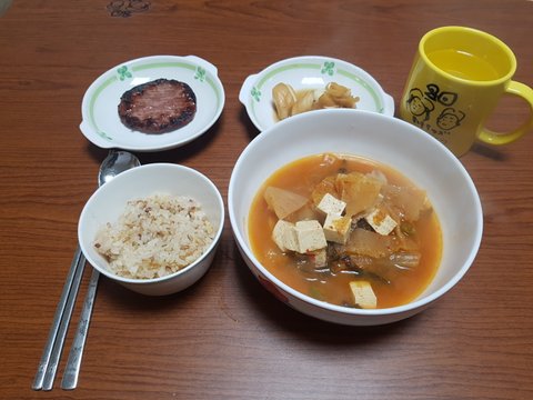 끓일줄아는 찌개 두개중 하나인 김치찌개가 메인