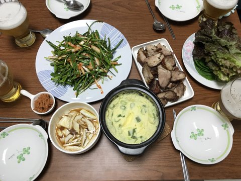 에어프라이어 샀다고 자랑하려고 한 수육과 부추무침ㅋㅋ