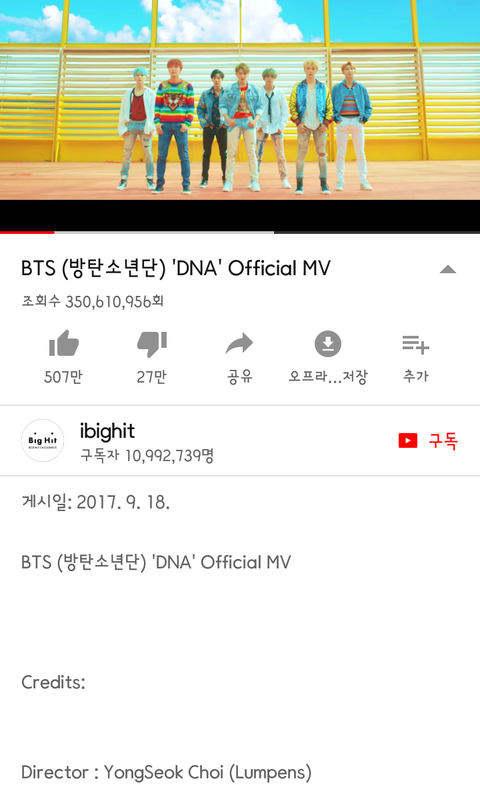 우와 방탄소년단 DNA 조회수