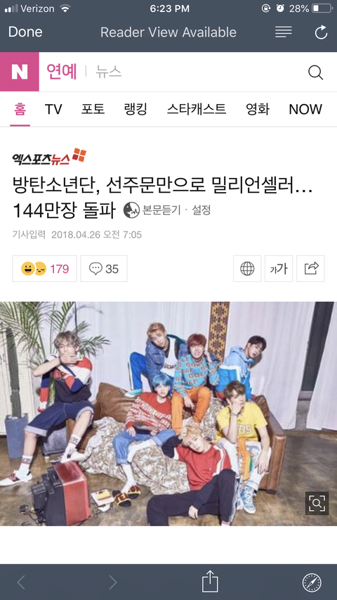 네1이버 기사 - 방탄소년단, 선주문만으로 밀리언셀러…144만장 돌파