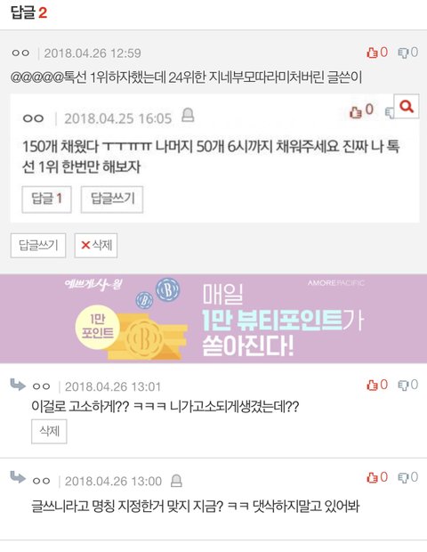 지가 톡선1위될려다가 24위해서 팩폭당하고 정신병자라니깐 지아닌척 지쉴드치곸ㅋㅋㅋㅋㅋ고소한다함