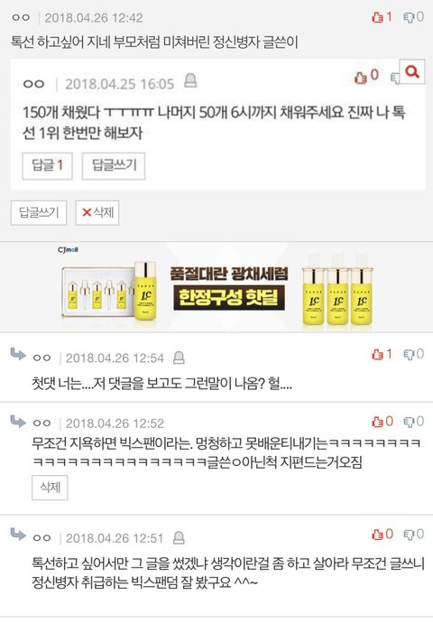 저런건 구라일수도 있음. 일부러 자기팬덤 욕 안먹게 하려고 어그로가 쓴척 글 수정해보라고 해봐 못하지?ㅋㅋ빼박 자기팬덤 욕먹을까봐 어그로인척 하는 댓글들