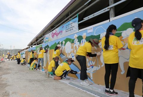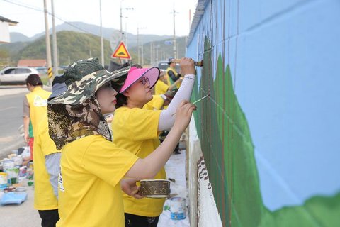 신천지자원봉사단, 청도 특색 담은 벽화봉사에 주민들 인기