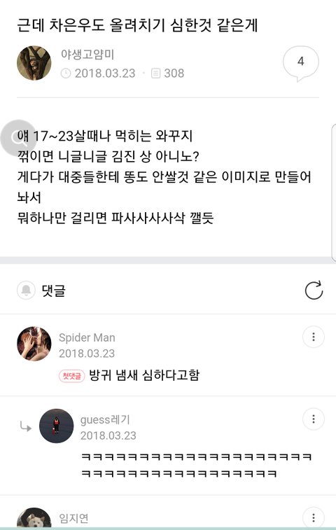 너희 다음카페 올뺌이라고알아???쭉빵에서 남돌팬들 보기싫다고 파고나간카페임