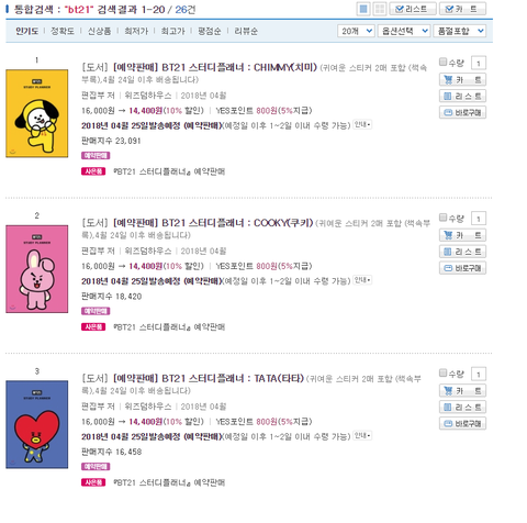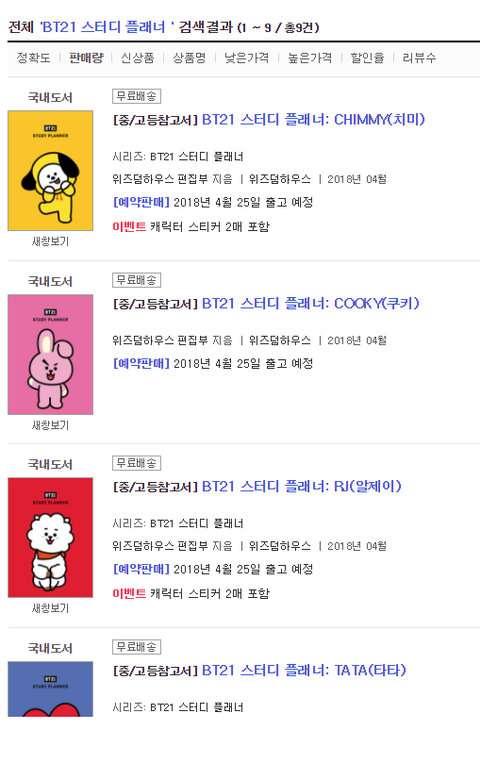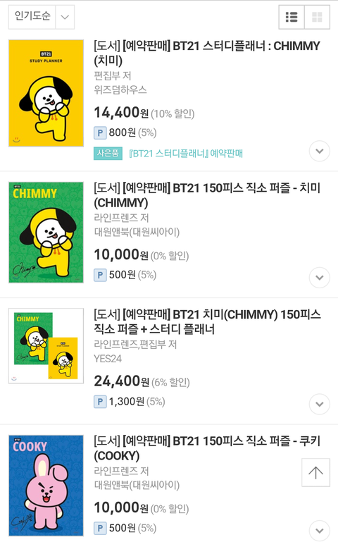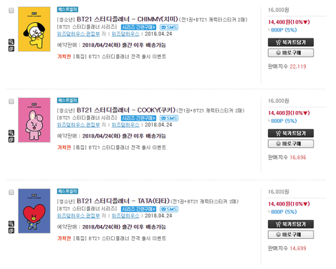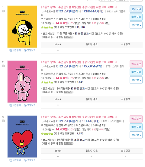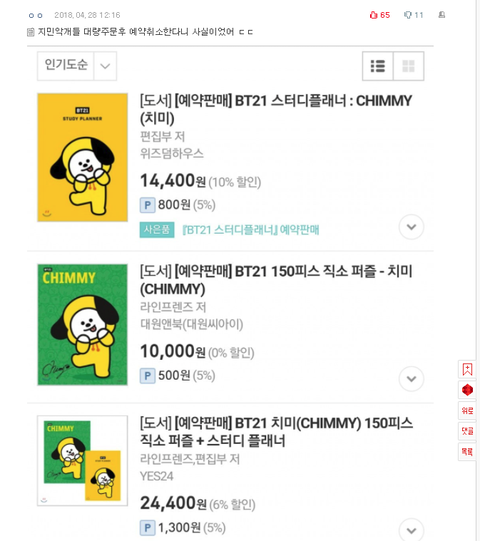 방탄이 만든 캐릭터 굿즈로 예약판매를 실시한 모든 인터넷 사이트에서 지민이 차이나게 판매량 1위를 먹어버림