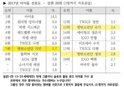 실제로 지민은 조작이 절대 불가능한 갤럽에서 2년연속 방탄내 1위를 차지했고