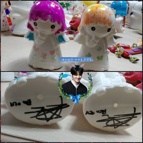 마지막으로 가수와 팬들이 함께참여한 저금통프로젝트 사진이야 제일 앞줄 4개가 렌이 꾸민 희망이래