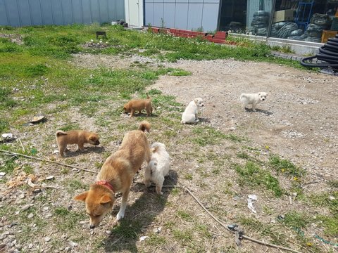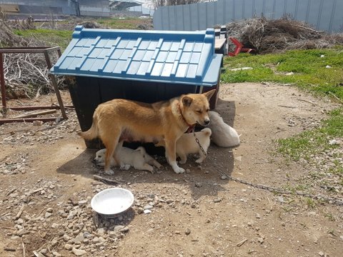 너무너무 귀여워서 올려보아요~밥먹으러가는 식당 강아지들인데 밥먹으러갈때마다 마음으로 힐링하고 오네요 새끼를 여섯마리나 낳았데요~