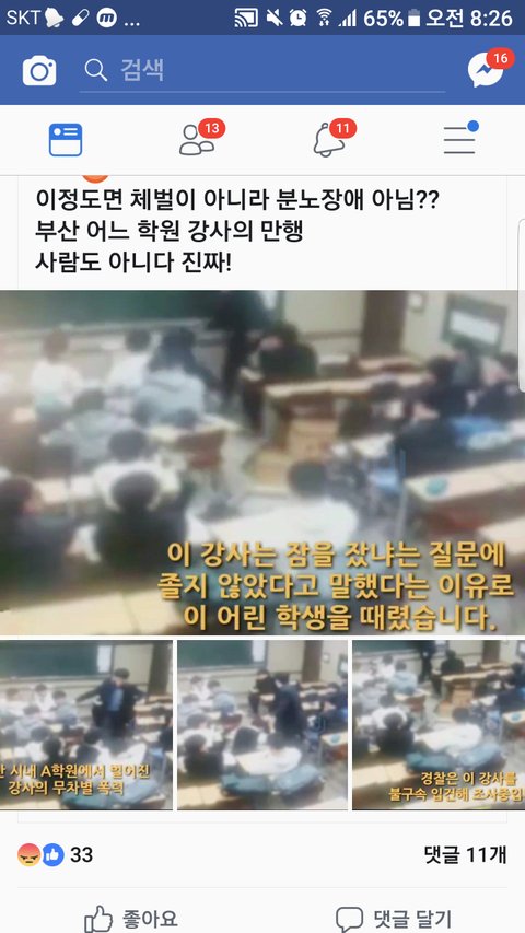부산 학원에서 학원 선생이 학생한테 폭력을 휘드림