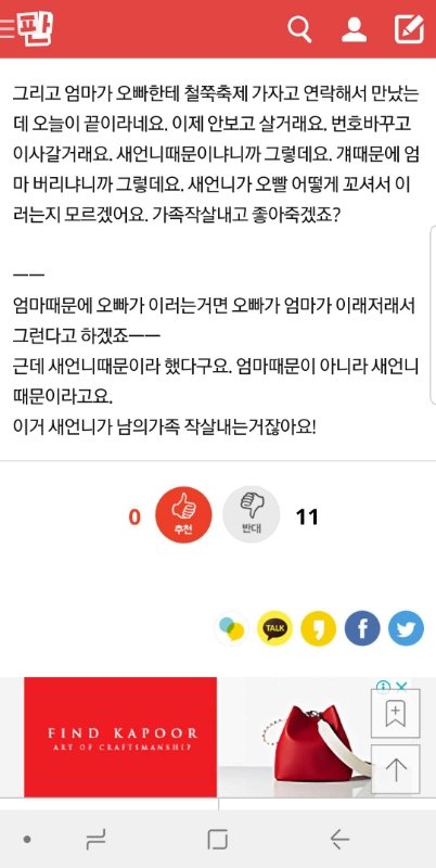 내쫓길만 했구만 뭘 새언니가 가족을 작살을 내...?? 얜 가정교육을 어찌 받았길래 이따구 생각밖에 못하는거지?? 하긴 그 애미 밑에서 뭘 보고 컸겠어.....